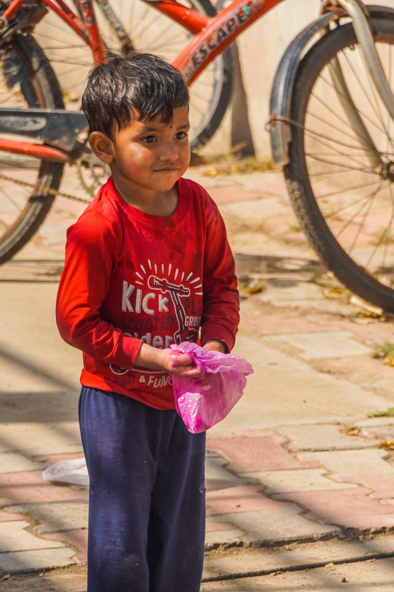 Cute Poor Child on City Street